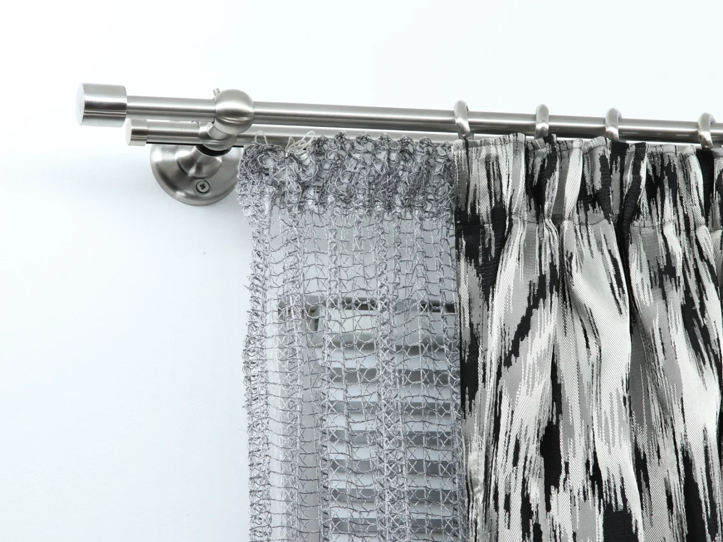 Double Curtain Rod & Rail for Window, Steel Rings and Hooks, Rollers, Double Standard Wall Brackets and Cylinder Ends