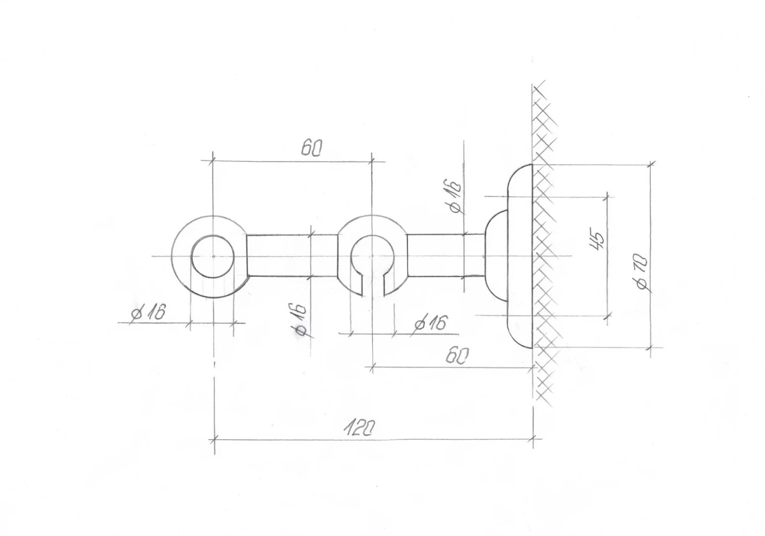 First rod(ø16mm diameter) is 12 cm from wall, the second rail(ø16mm diameter) is 6 cm from wall and the distance between the two pipes is 6 cm(for all dimensions see my drawing).