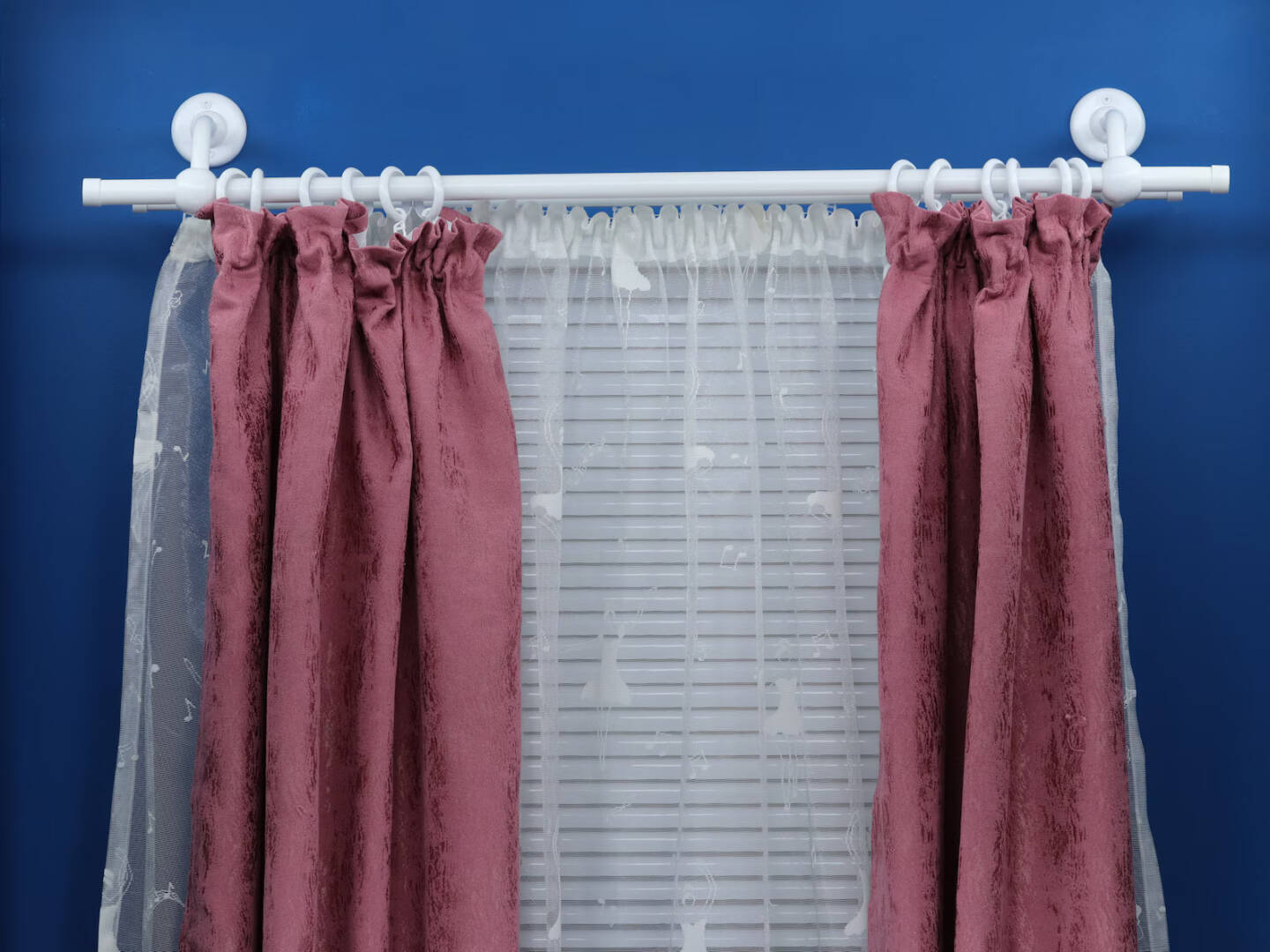 Double Curtain Rod & Rail with Different Pipes for Window, Steel Rings and Hooks, Rollers, Double Bent Wall Brackets and Plug Ends