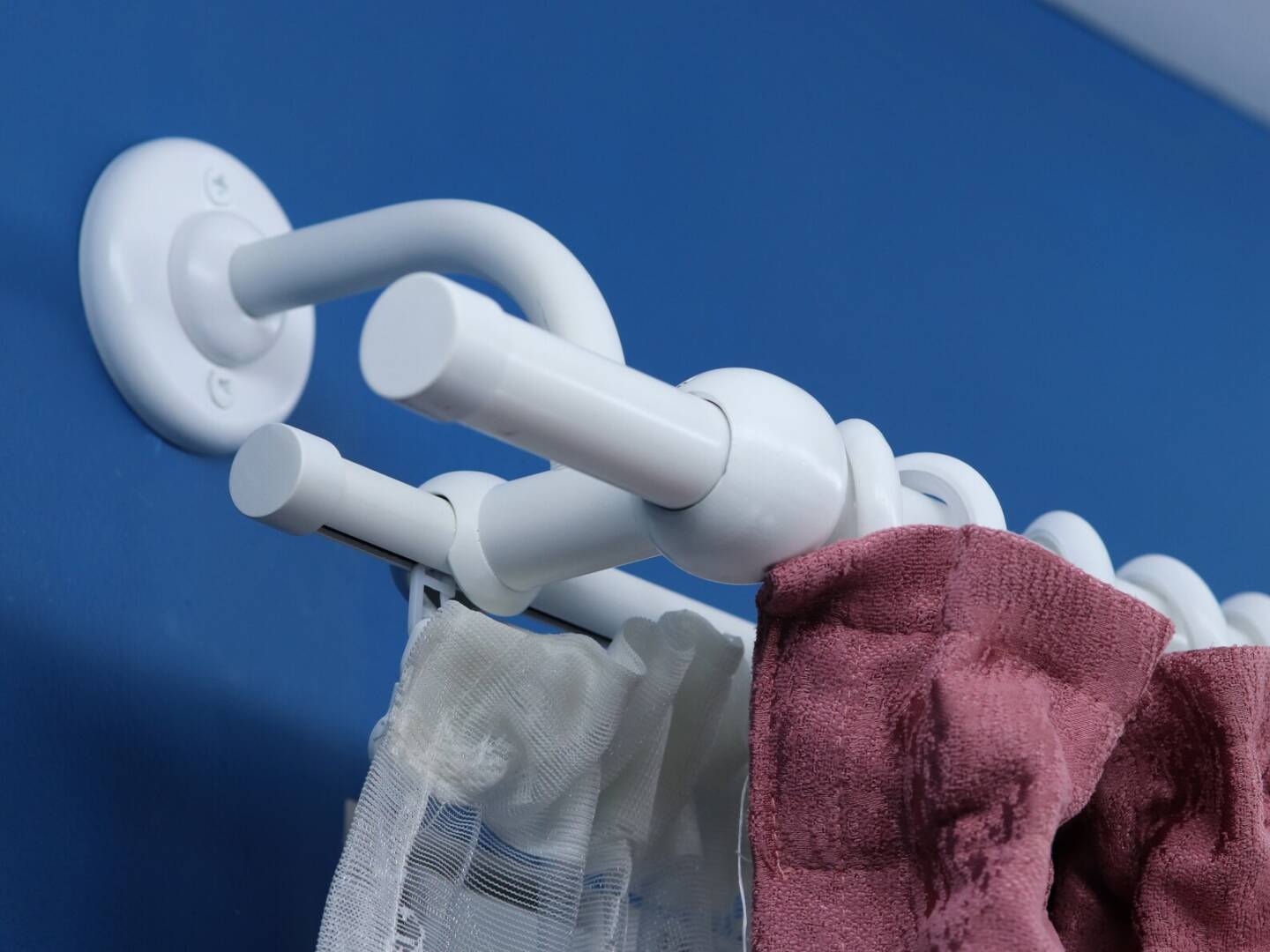Double curtain rod & rail is combination with two different poles(rod- ø22mm and rail ø16mm in diameter) for windows and doors with steel rings and hooks + plastic rollers. This is a unique combination between a classic style curtain rod with metal rings (front) and a modern rail with hidden plastic sliders (back).
