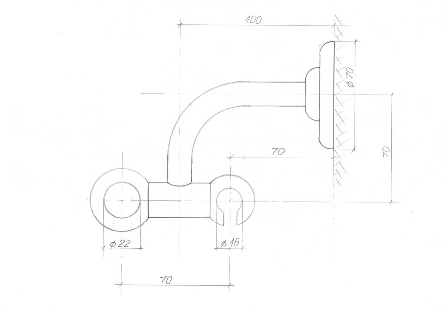 First rod (ø22mm diameter) is 14 cm from wall, the second rail (ø16mm diameter) is 7 cm from wall and the distance between the two pipes is 7 cm (for all dimensions see my drawing).