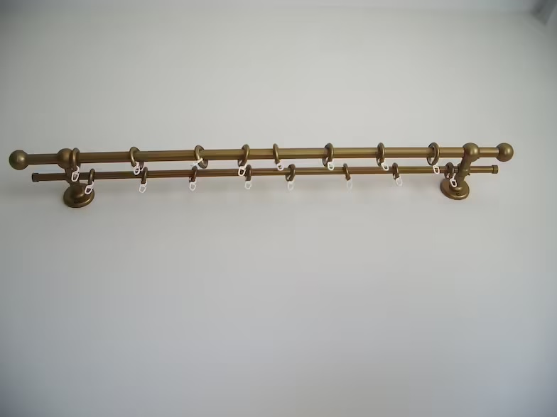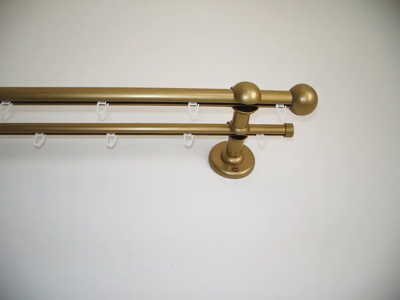 Double Curtain Rail Different Pipes for Window with Rollers, Double Wall Brackets and Ball Ends