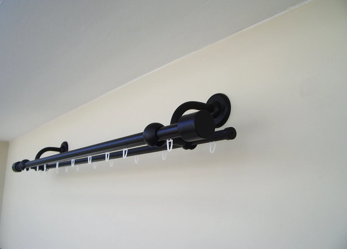 Double curtain rail with two different pipes for windows and doors with rollers.