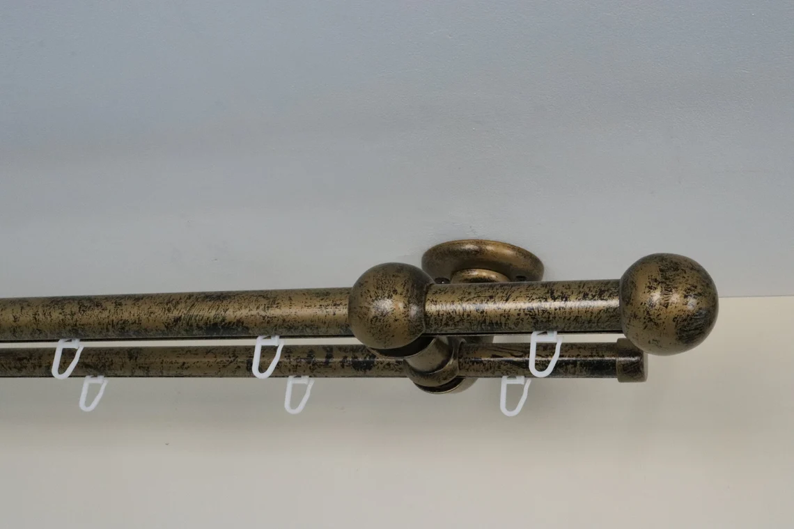 Double Curtain Rail with Different Pipes for Window with Rollers, Double Curved Wall Brackets and Ball Ends