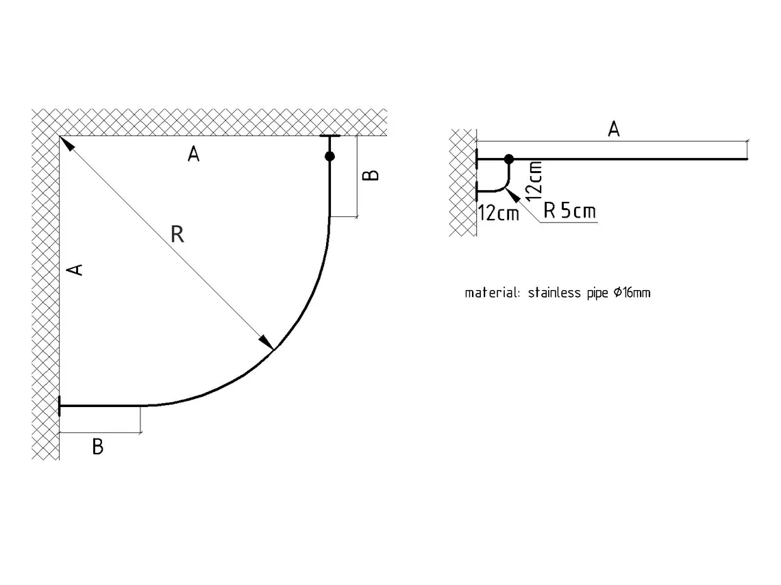 L- Shaped Corner Shower Curtain Rod for Bathroom, Fitting and Dressing room for Wall & Ceiling Montage with Custom Size