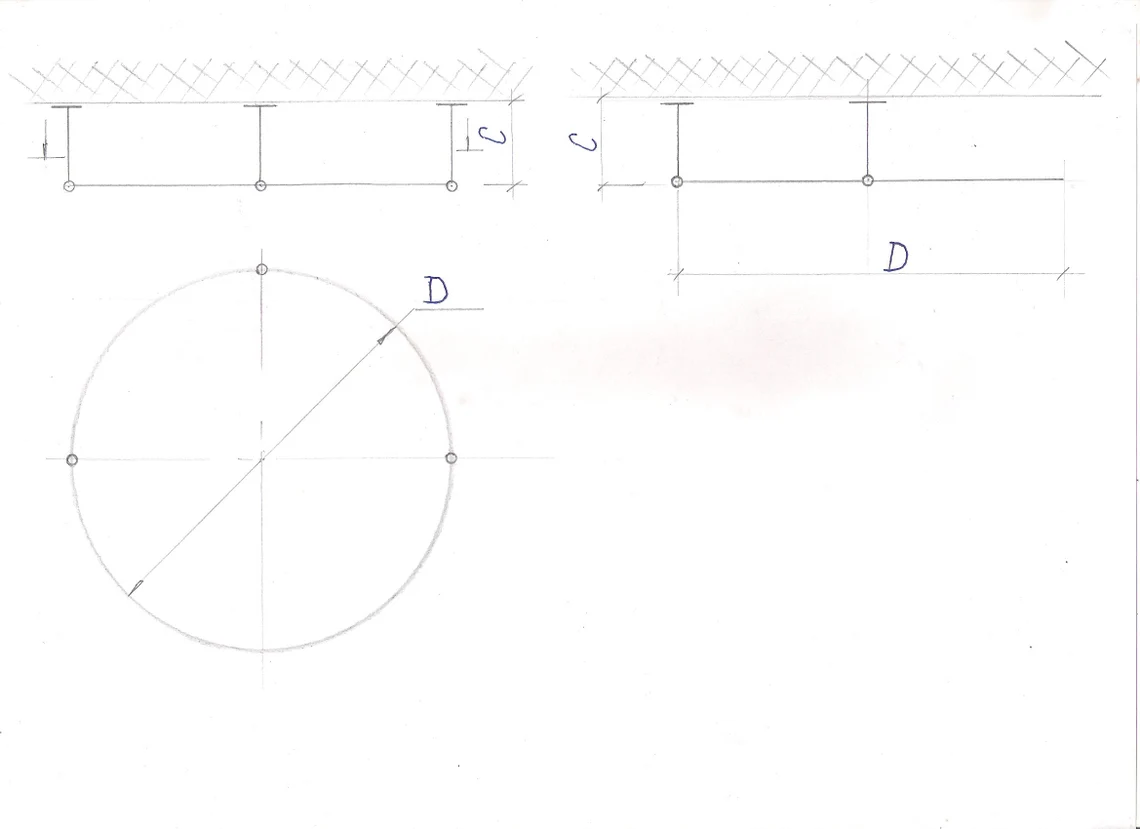 * C – length of ceiling supports(brackets)(the distance from ceiling to the circle rod) *