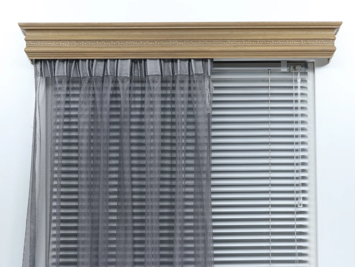 Solid wooden rail with built-in aluminum profile for smooth movement of the sliders and easy movement of the curtain. For every dimensions see the drawing.