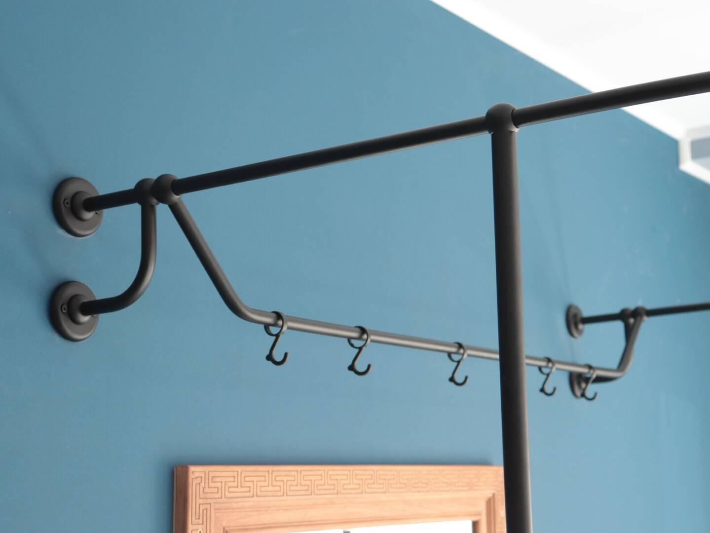 The model has a clean and modern design of a dressing room that allows the hanging of clothes hangers or clothes can be hung directly on the hangers that are mounted on the rod. Each size includes 5 rings/hooks for clothes hangers, but if you don’t have enough, please write to me.