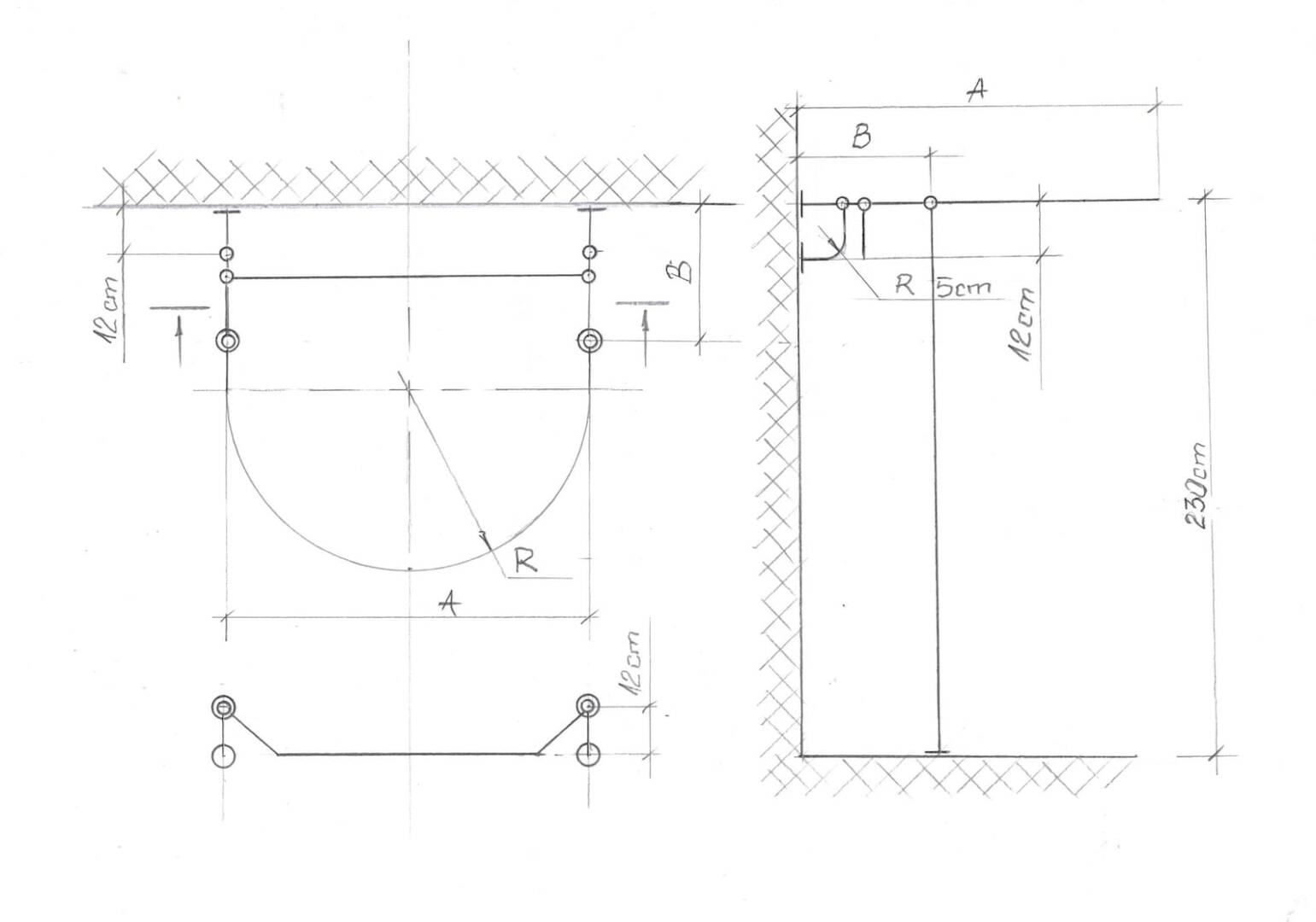 U Shaped Shower Curtain Rod for Bathroom, Fitting and Dressing room for Ceiling Montage at Custom Size